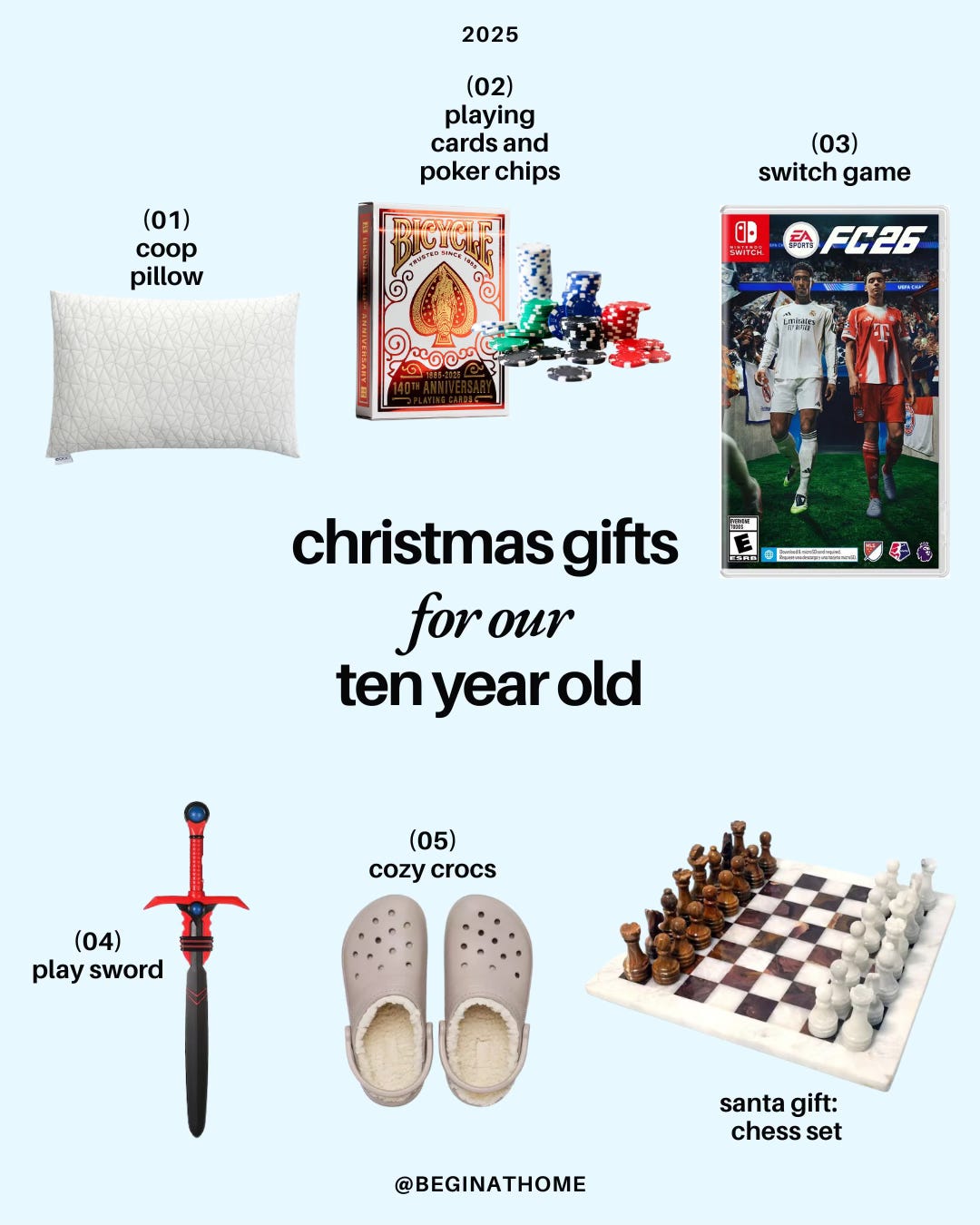 coop pillow // playing cards and poker chips // nintendo switch game // play sword // cozy crocs // chess set